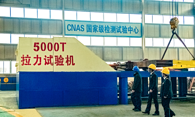檢測(cè)中心技術(shù)力量雄厚、檢測(cè)手段先進(jìn)完備、擁有世界上先進(jìn)的檢測(cè)設(shè)備,同時(shí)公司自主研發(fā)了5000t、2000t、1000t、300t系列臥式電液伺服拉力試驗(yàn)機(jī),其中5000t臥式拉力試驗(yàn)機(jī)是目前噸位最大的拉力試驗(yàn)設(shè)備,為索具產(chǎn)品提供全面、優(yōu)質(zhì)的檢測(cè)服務(wù)。