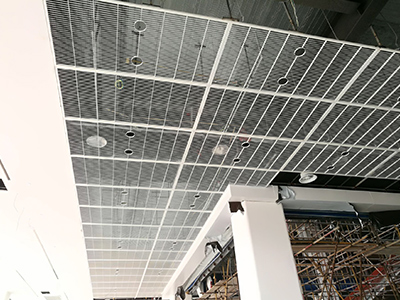 吊頂格柵網是一種采用鋼格柵板設計制造室內吊頂產品。它具有鋼格柵板的結構輕便,美觀,高強度可行人的特點,并且安裝簡便,在鋼格板吊頂的表面經過熱浸鋅,具有60年防腐耐用且免油漆維護的特性。