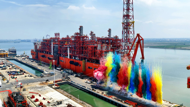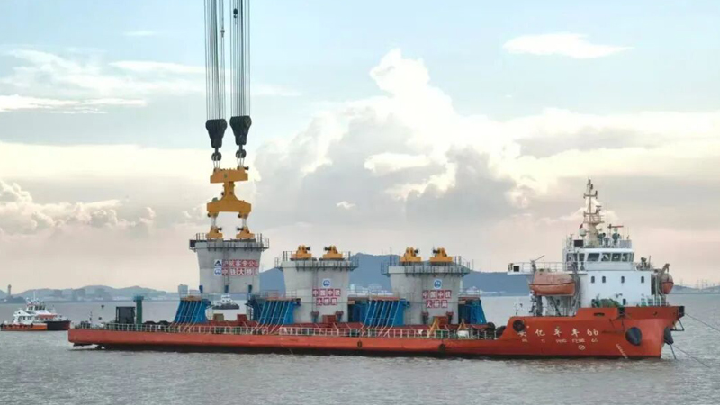 我國自主建造的最大噸位、最大儲氣量的新型海上浮式液化天然氣生產(chǎn)裝置NGUYA FLNG(恩古雅海上浮式液化天然氣裝置)在江蘇南通(啟東)呂四港啟航,巨力索具5000T吊梁大展風(fēng)采。