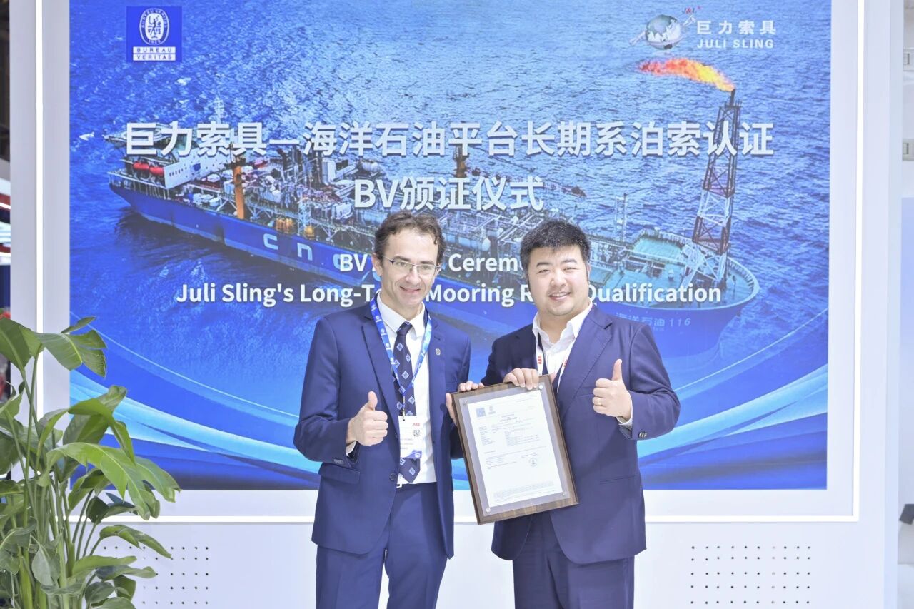 在2025中國國際海事會(huì)展期間,法國船級(jí)社(BV)向巨力索具頒發(fā)了“海洋石油平臺(tái)長期系泊索”專項(xiàng)認(rèn)證證書。這項(xiàng)認(rèn)證是針對(duì)海洋石油平臺(tái)長期系泊索這一技術(shù)門檻領(lǐng)域的專項(xiàng)認(rèn)證,是對(duì)巨力索具深耕深海裝備技術(shù)的最佳注腳。