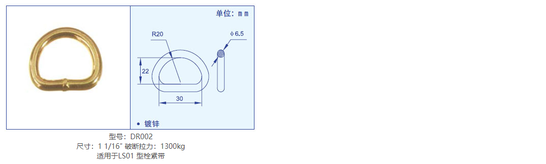 | 產(chǎn)品型號(hào) | 適用尺寸 | 破斷拉力(kg) | 規(guī)格大小(mm) | 表 面 | 適合型號(hào) | |||